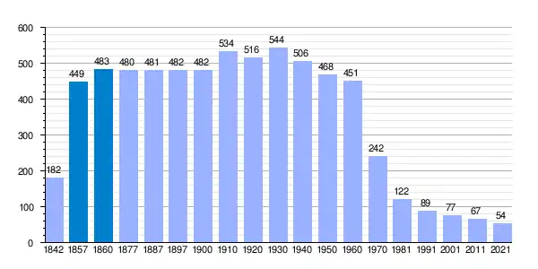 | Gráfica de evolución demográfica de Viana de Duero[6] entre 1842 y 2021 |