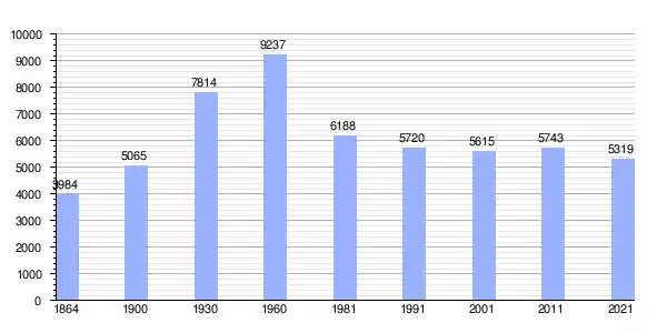 | Gráfica de evolución demográfica de Viana do Alentejo entre 1864 y 2021 |