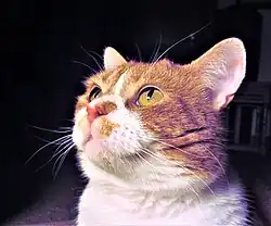 Las vibrisas[a] (del latín vibrissae -ārum: pelos de la nariz) son un tipo de pelos rígidos especializados que poseen algunos animales (especialmente los mamíferos, a modo de bigotes) como elemento sensorial táctil.[1] Se encuentran en todos los primates,[2] y en el Homo sapiens las vibrisas se encuentran en el vestíbulo de la nariz y son cortas.[3] Si bien se hallan en varias partes del cuerpo, las vibrisas faciales son las más estudiadas.[4] También poseen elementos similares algunas plantas como las dioneas o atrapamoscas, a las que les ayudan a percibir los insectos cuando se posan sobre alguno de sus seis pelos, cerrando después sus dos mitades para digerirlos una vez atrapados.