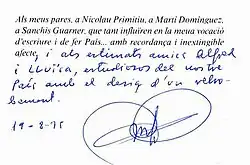 - «Discurs i programa de redreçament cultural =». Centro de Cultura Valenciana (Valencia: Sucesor de Vives Mora) (25): 9-10. 1980.