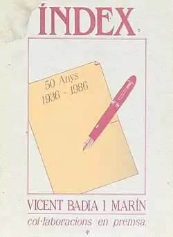 - Badia i Marín, Vicent (1986). Índex, 50 anys 1936-1986 Col.laboracions en premsa (en catalán). Valencia: Impremta Fermar, S.L. ISBN 84-398-7-724-2.