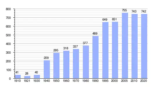 Población de los censos y conteos del Instituto Nacional de Estadística y Geografía (INEGI) de 1910 a 2010.[6] |