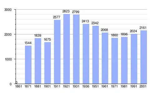 Gráfica de evolución demográfica de Vico nel Lazio entre 1861 y 2001