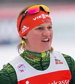 Participó en dos Juegos Olímpicos de Invierno, obteniendo dos medallas en Pekín 2022, oro en velocidad por equipo (junto con Katharina Hennig) y plata en el relevo (con Katherine Sauerbrey, Katharina Hennig y Sofie Krehl), y el sexto lugar en Pyeongchang 2018, en el relevo.[1]