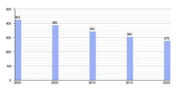 | Gráfica de evolución demográfica de Vide (parroquia) entre 2000 y 2022 |