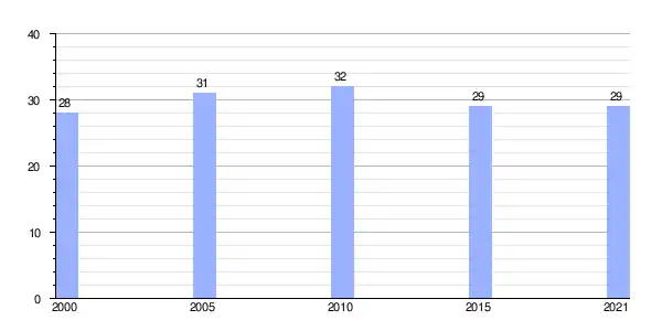 | Gráfica de evolución demográfica de Viduedo entre 2000 y 2021 |