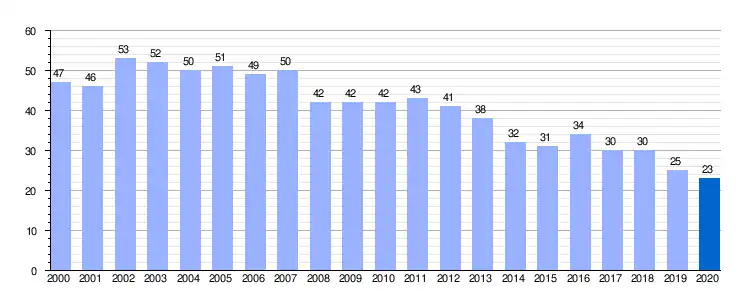 | Gráfica de evolución demográfica de Viduerna de la Peña entre 2000 y 2020 |