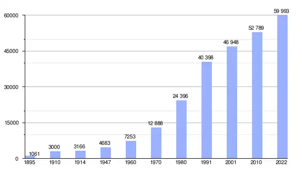 El último censo argentino, realizado en 2022 y cuyos datos disgregados por municipio fueron publicados en julio de 2024, contó 59.993 habitantes y 25.216 viviendas.[32][33][34] Esto marca un incremento de 7.204 habitantes respecto al último censo, realizado en 2010, que arrojó que la ciudad poseía 52.789 habitantes.[35][36]Además, el censo dio a conocer datos de su composición poblacional (27500 hombres 29841 mujeres), población urbana sin población rural dispersa o localidades dispersas en el municipio (57341) densidad y área urbana.[37]De esta manera, Viedma se ubica como la novena ciudad más poblada de la Patagonia argentina, la cuarta de su provincia y la más poblada del valle inferior del río Negro.