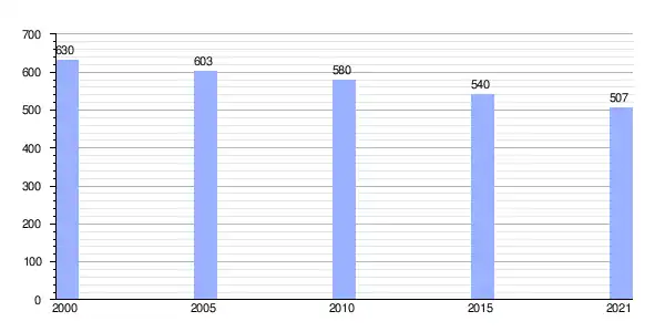 Gráfica de evolución demográfica de Vieiro entre 2000 y 2021