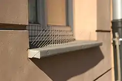 El vierteaguas, es una pieza importante de las ventanas, ya que evita la entrada del agua al edificio.[5] En algunos países existen normativas sobre las especificaciones de los vierteaguas. En España, los mismos deben tener una pendiente de 10 grados como mínimo, estar impermeabilizados y poseer un goterón en la cara inferior de la saliente.[6] Existen diferentes tipos de vierteaguas de acuerdo a los materiales utilizados para su construcción, siendo los más comunes de piedra, hormigón, cerámica, metal y de hormigón polímero.