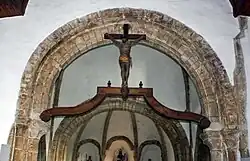 Durante la Semana Santa, el velo funerario que ocultaba el altar y el santuario se colgaba de ella.[4]