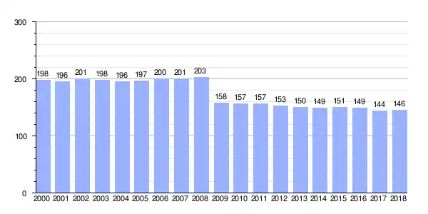 | Gráfica de evolución demográfica de Vigo entre 2000 y 2018 |
