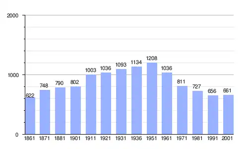| Gráfica de evolución demográfica de Vigolo entre 1861 y 2001 |