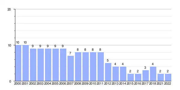 | Gráfica de evolución demográfica de Vila de Suso entre 2000 y 2022 |