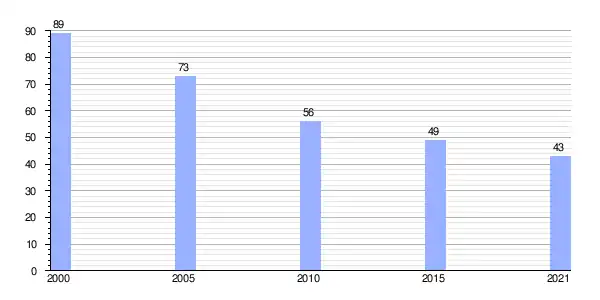 | Gráfica de evolución demográfica de Vilachá (parroquia) entre 2000 y 2021 |