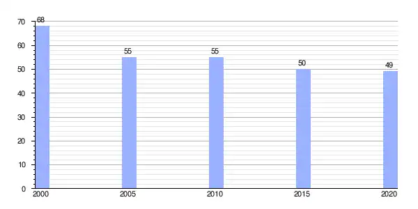 Gráfica de evolución demográfica de Vilamelle entre 2000 y 2020