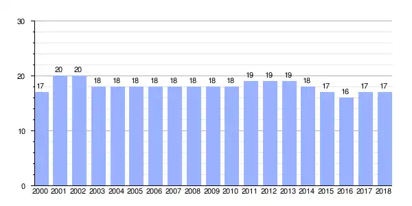 | Gráfica de evolución demográfica de Vilanova entre 2000 y 2018 |