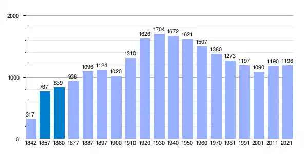 | Gráfica de evolución demográfica de Vilanova de Bellpuig[3] entre 1842 y 2021 |