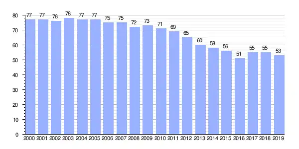 | Gráfica de evolución demográfica de Vilar (parroquia) entre 2000 y 2019 |