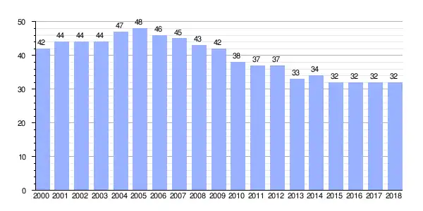 | Gráfica de evolución demográfica de Vilar de Cima entre 2000 y 2018 |