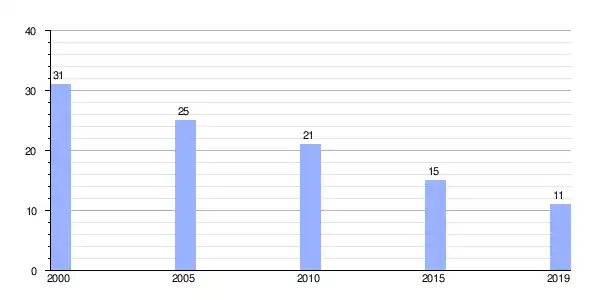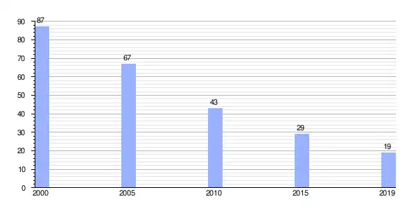 | Gráfica de evolución demográfica de Vilar de Cuiña (parroquia) entre 2000 y 2019 |