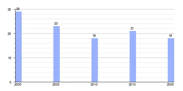 | Gráfica de evolución demográfica de Vilar de Donas (aldea) entre 2000 y 2020 |