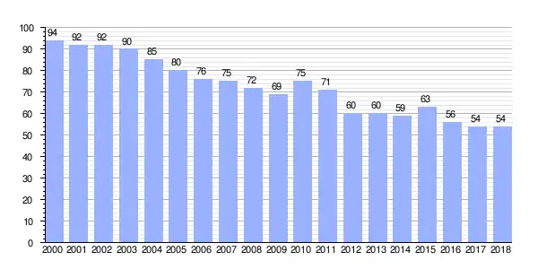 | Gráfica de evolución demográfica de Vilar de Suso entre 2000 y 2018 |