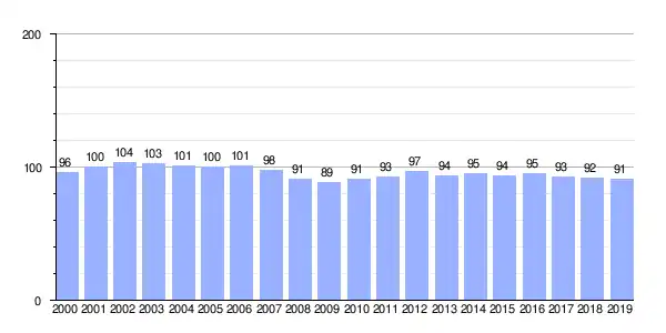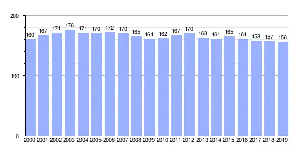 | Gráfica de evolución demográfica de Vilariño (parroquia) entre 2000 y 2019 |