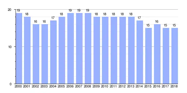 | Gráfica de evolución demográfica de Vilidón entre 2000 y 2018 |