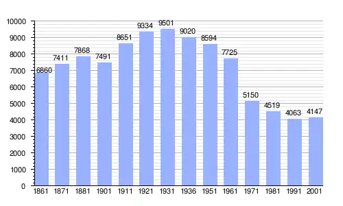 | Gráfica de evolución demográfica de Villa Minozzo entre 1861 y 2001 |