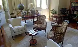 - Sala de estar: es el lugar donde la dueña de casa se reunía con sus amigos, de algunos de los cuales se pueden encontrar fotografías.
