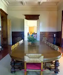 - Comedor: se compone de una mesa clásica para 16 personas, sillas modernas y lámparas Bauhaus colocadas por Victoria Ocampo.