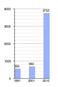 | Variación intercensal | + 442 % (2001 - 2010) | |