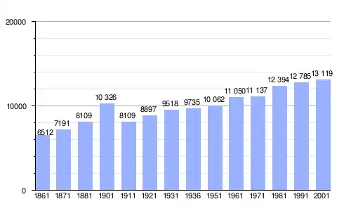 | Gráfica de evolución demográfica de Villa San Giovanni entre 1861 y 2001 |