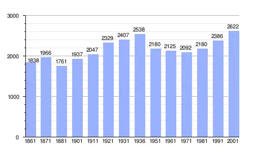 | Gráfica de evolución demográfica de Villa Santa Lucía entre 1861 y 2001 |