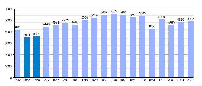 Gráfica de evolución demográfica de Villa de Mazo[39] entre 1842 y 2021