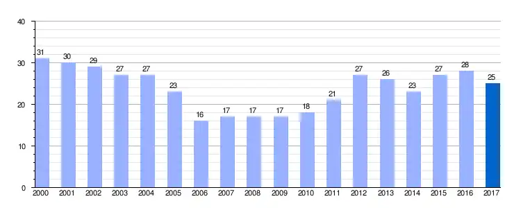 | Gráfica de evolución demográfica de Villabáscones entre 2000 y 2017 |