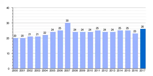 | Gráfica de evolución demográfica de Villabezana[6] entre 2000 y 2017 |