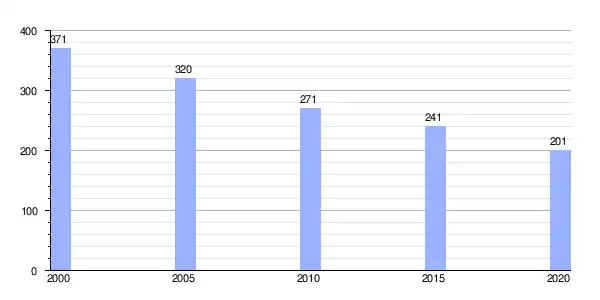 | Gráfica de evolución demográfica de Villaboa (parroquia) entre 2000 y 2020 |