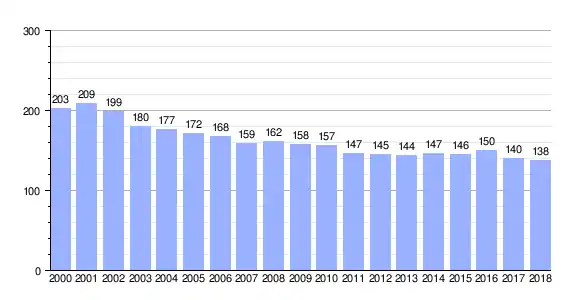 | Gráfica de evolución demográfica de Villadavil entre 2000 y 2018 |