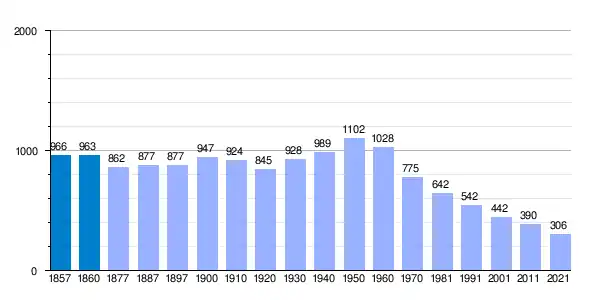 | Gráfica de evolución demográfica de Villademor de la Vega[9] entre 1857 y 2021 |