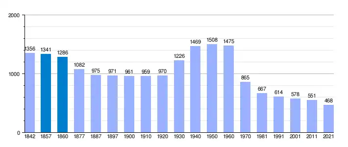 | Gráfica de evolución demográfica de Villaescusa de Haro[2] entre 1842 y 2021 |