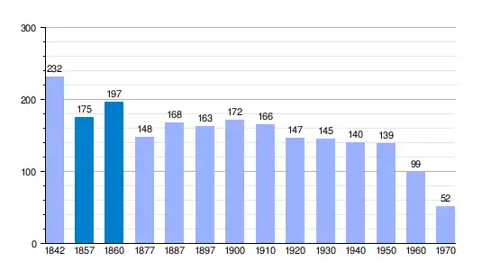 | Gráfica de evolución demográfica de Villaescusa de Palositos[1] entre 1842 y 1970 |