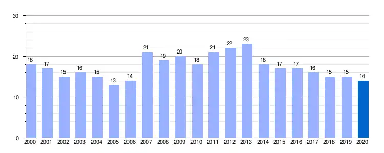 | Gráfica de evolución demográfica de Villaesper entre 2000 y 2020 |