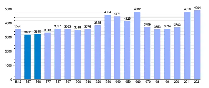 | Gráfica de evolución demográfica de Villafranca de Córdoba[2] entre 1842 y 2021 |