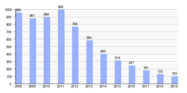 | Gráfica de evolución de Deuda viva del Ayuntamiento de Villafranca de Córdoba entre 2008 y 2019 |