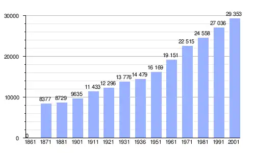 | Gráfica de evolución demográfica de Villafranca di Verona entre 1861 y 2001 |