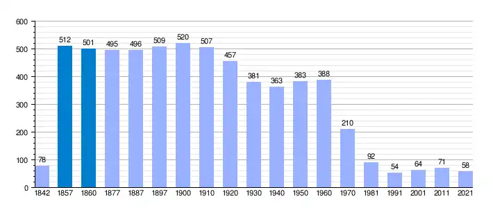 Población de derecho según los censos de población del INE. Población de hecho según los censos de población del INE.Entre el censo de 1857 y el anterior, crece el término del municipio porque incorpora a Ezquerra y Santa Olalla del Valle.[3] |