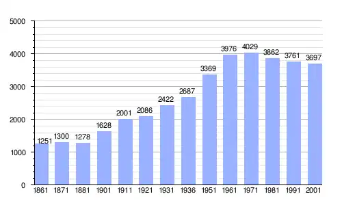 | Gráfica de evolución demográfica de Villagrande Strisaili entre 1861 y 2001 |
