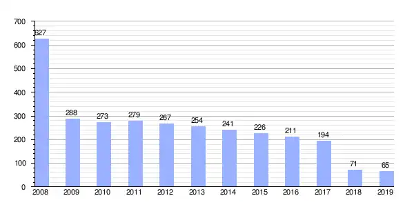 | Gráfica de evolución de Deuda viva del Ayuntamiento de Villaharta entre 2008 y 2019 |